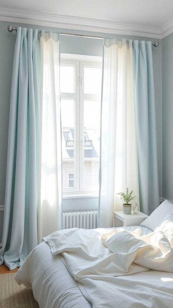 บ้านที่ผนังสีขาวหรือสีอ่อน ๆ การใช้ม่านโทน “พาสเทล” อย่างฟ้าอ่อน ชมพูอ่อน หรือสีขาวครีม จะทำให้บ้านดูสบายตา แถมยังช่วยให้ห้องดูกว้างขึ้นจริง ๆ เวลาแดดส่องแล้วนุ่มนวล ไม่แสบตา