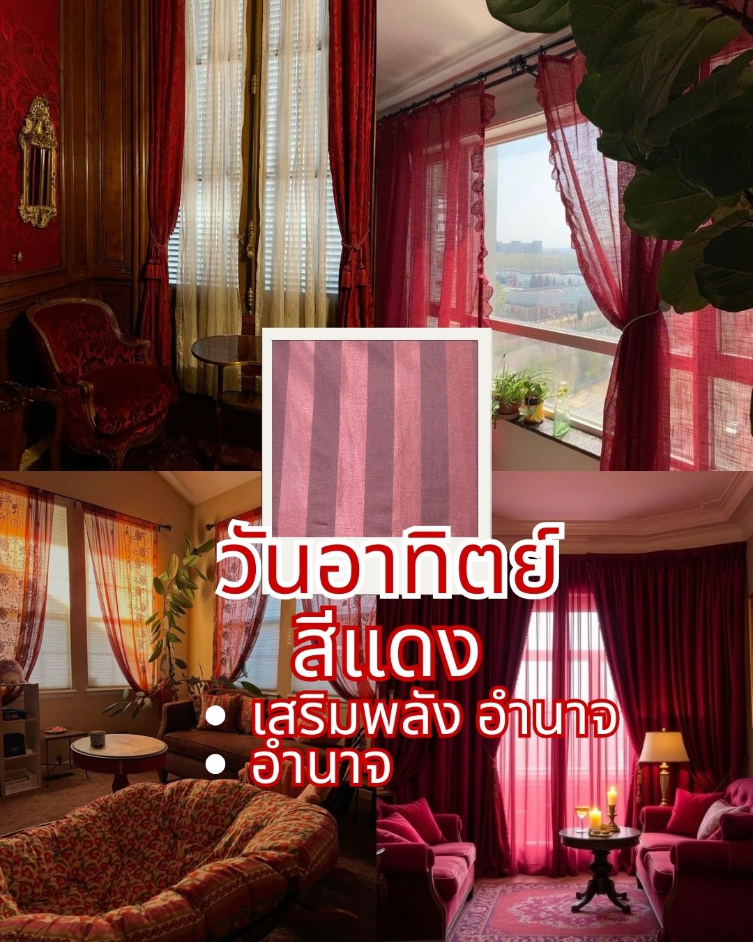 วันอาทิตย์ → สีแดง (เสริมพลัง อำนาจ)