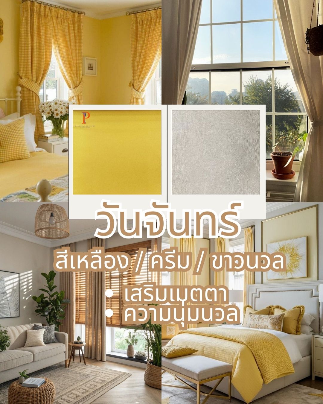 วันจันทร์ → สีเหลือง / ครีม / ขาวนวล (เสริมเมตตา ความนุ่มนวล)