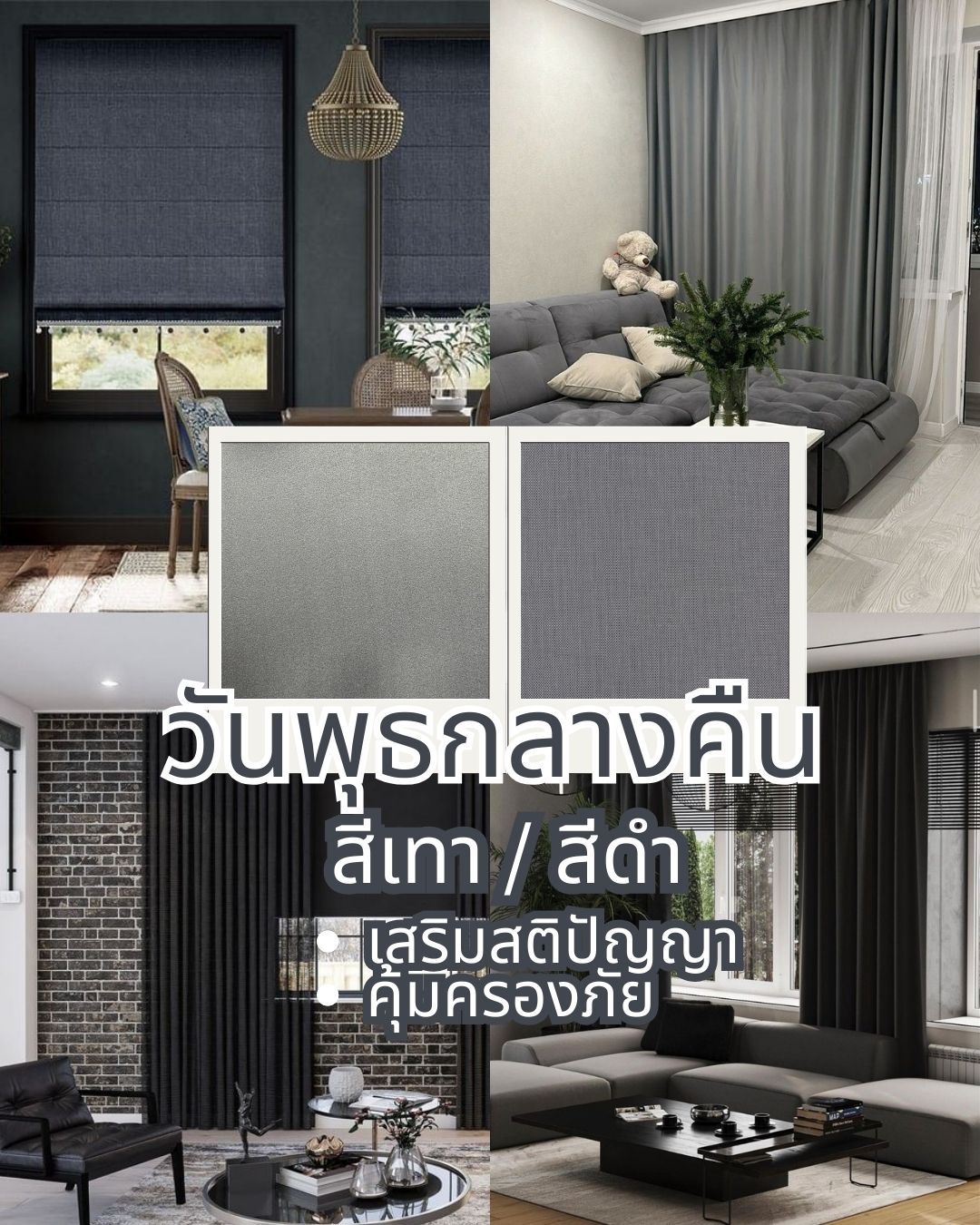 วันพุธ (กลางคืน) → สีเทา / ดำ (เสริมสติปัญญา คุ้มครองภัย)