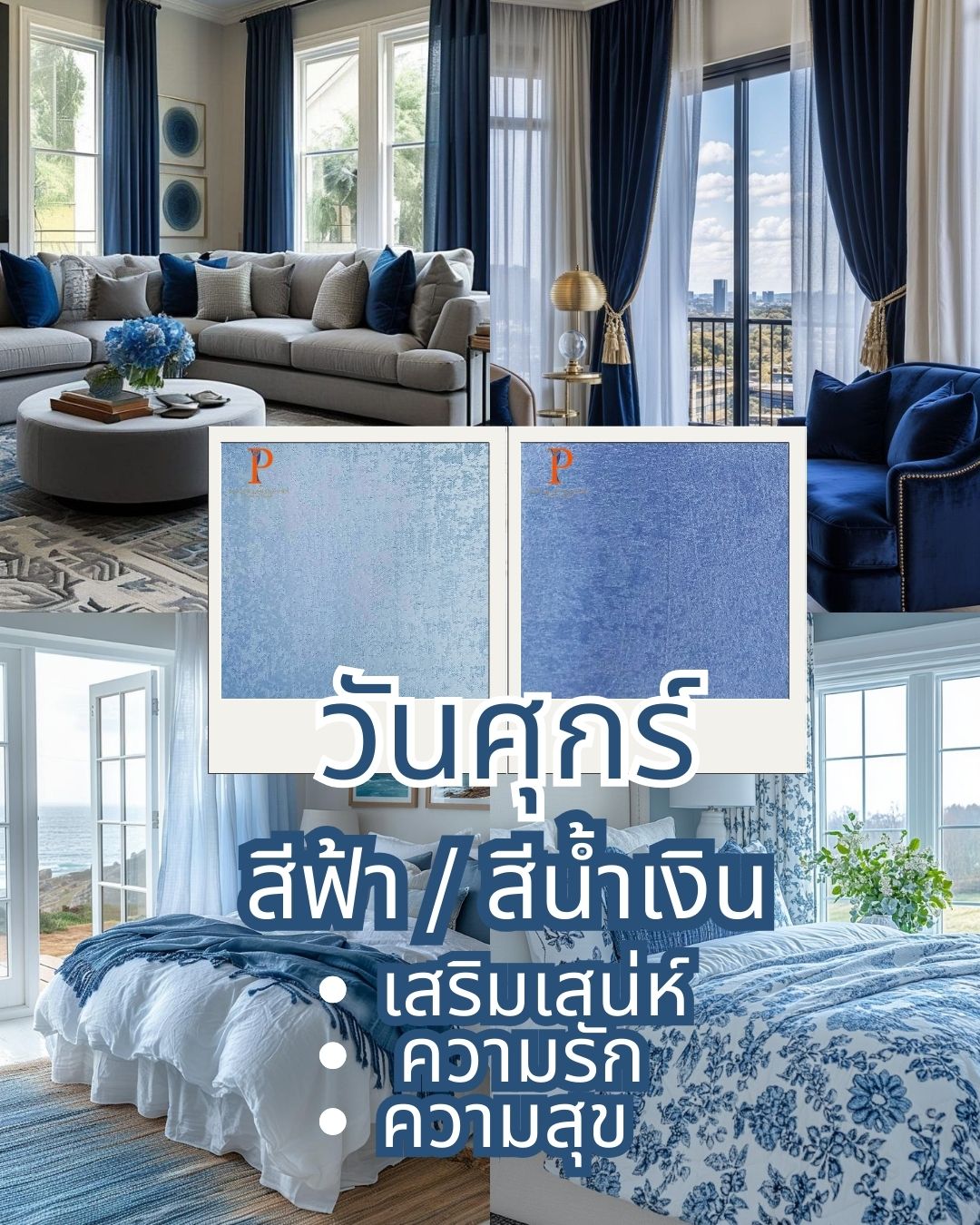 วันศุกร์ → สีฟ้า / น้ำเงิน (เสริมเสน่ห์ ความรัก ความสุข)