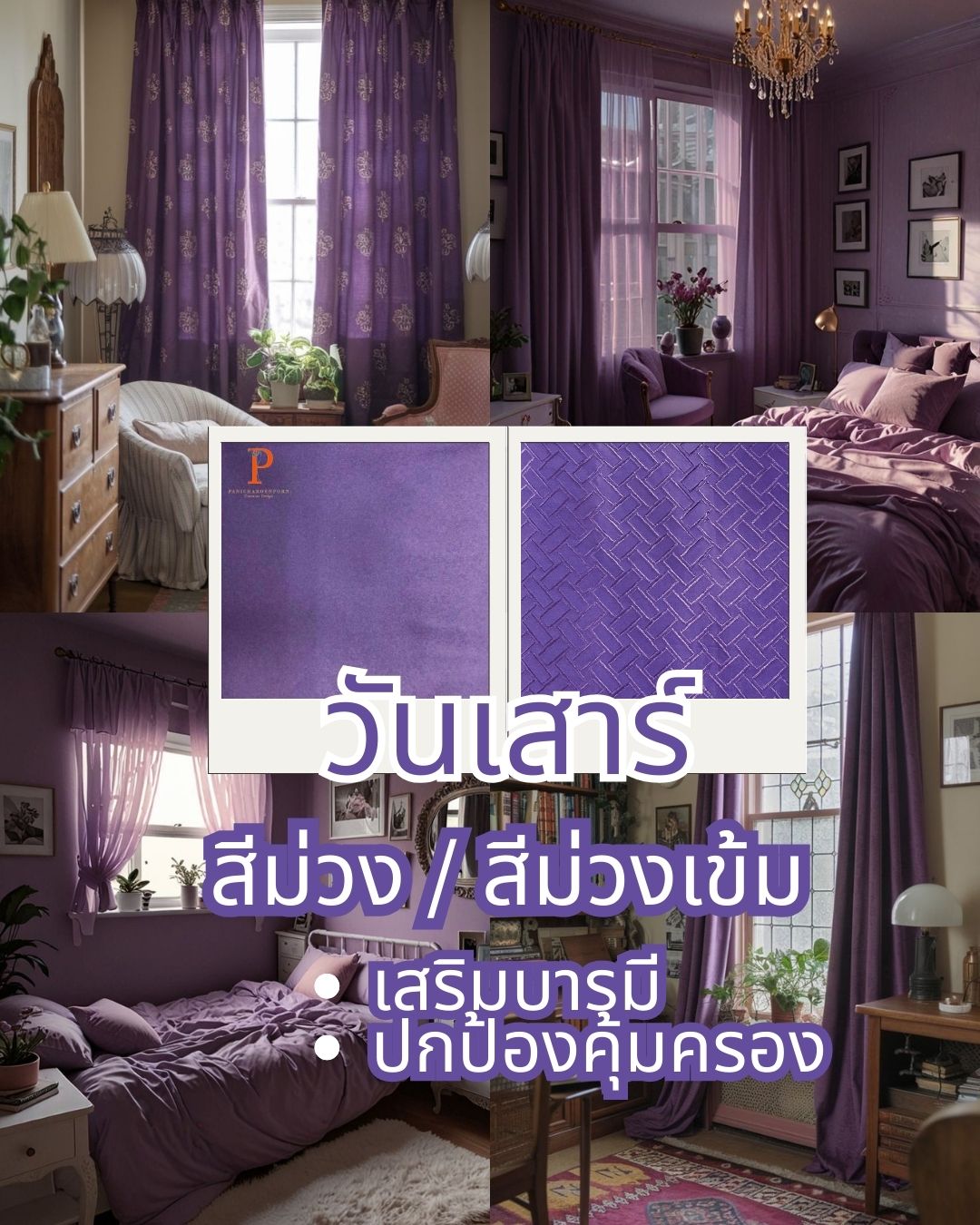 วันเสาร์ → สีม่วง / ม่วงเข้ม (เสริมบารมี ปกป้องคุ้มครอง)